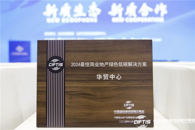 华贸中心的超前布局和与时俱进赢得了外界的认可。2024 年 9 月 14 日,中国国际服务贸易交易会第二届中国商业地产运营管理论坛在首钢园成功举办,华贸中心荣获 2024 最佳商业地产绿色低碳解决方案奖项。