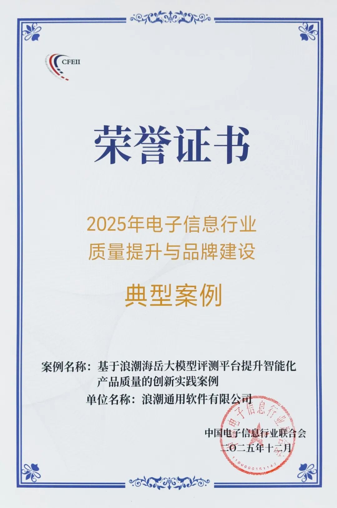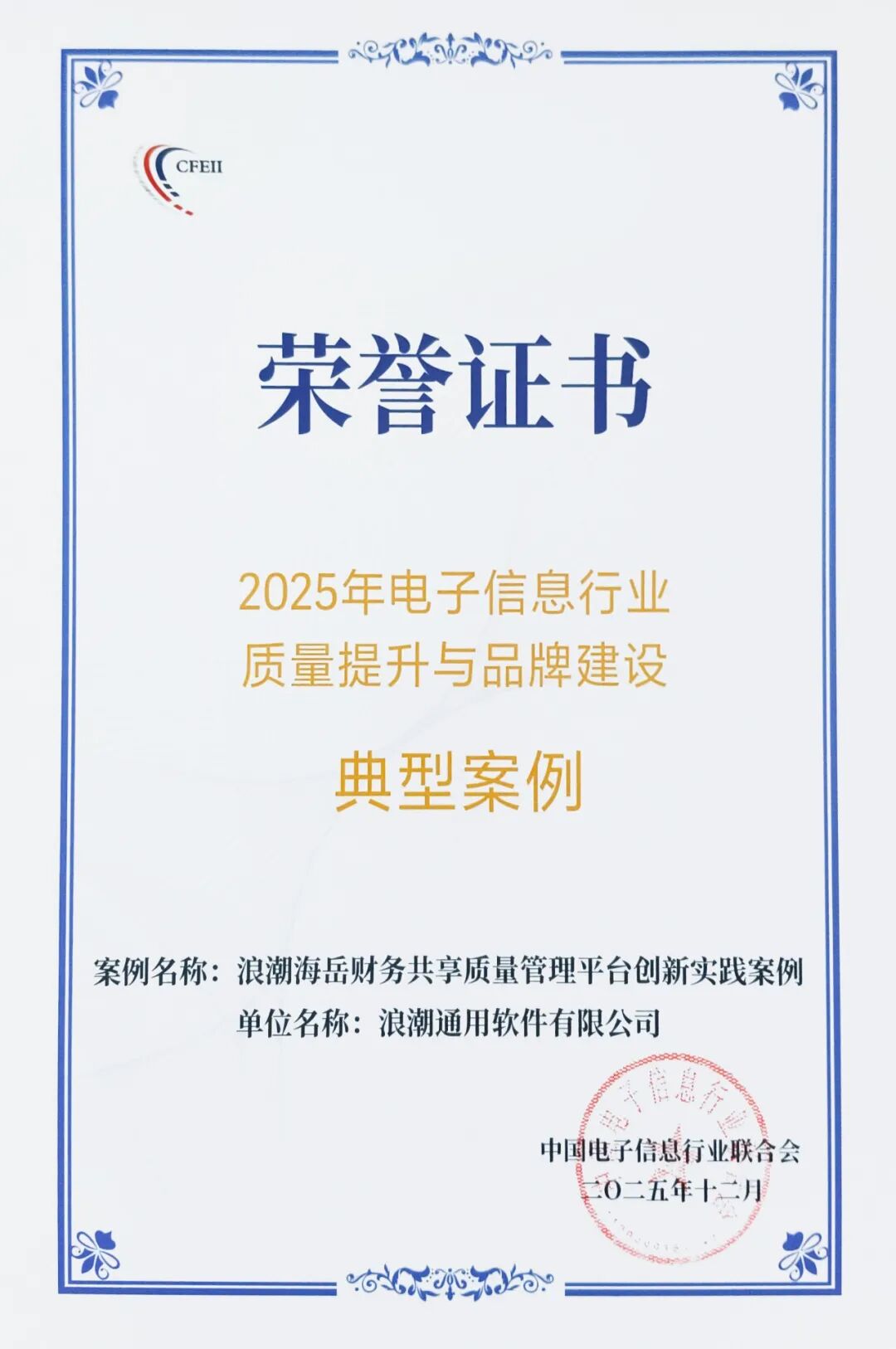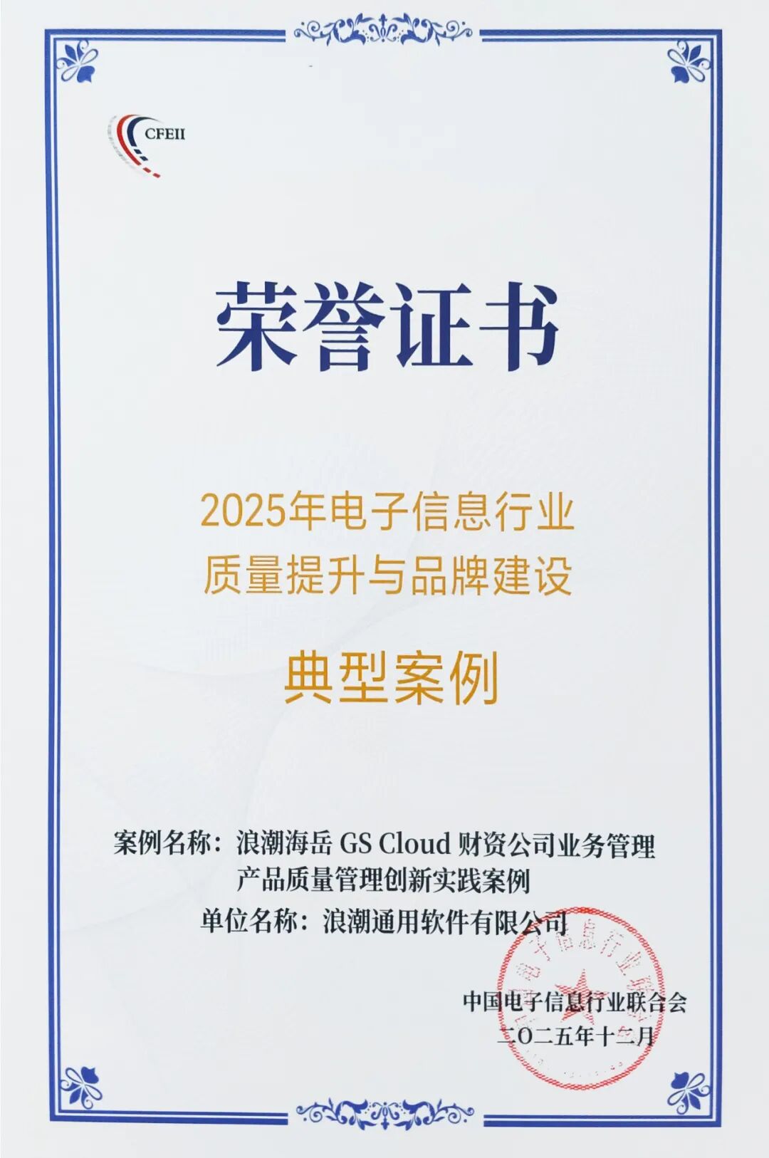 2025年电子信息行业质量提升与品牌建设典型案例遴选由中国电子信息行业联合会发起,旨在落实国家质量提升战略部署、推动质量技术创新应用、提升产品可靠性水平,及时发现、总结、推广一批示范性强的质量管理先进经验。浪潮数字企业提报的“基于浪潮海岳大模型评测平台提升智能化产品质量的创新实践案例”“浪潮海岳财务共享质量管理平台创新实践案例”“浪潮海岳GS Cloud财资公司业务管理产品质量管理创新实践案例”“浪潮易云AI财税生态赋能小微企业质量创新实践”“浪潮智慧水务云平台质量管理创新实践”和“博兴智慧水务项目质量技术创新应用”六项案例成功入选,充分体现了在质量创新与实践方面的示范意义与引领作用。