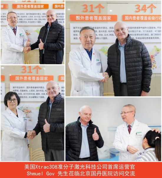 近日,美国Xtrac308准分子激光科技公司(STRATA Skin Sciences,Inc.)首席运营官舍穆埃尔·戈夫(Shmuel Gov)先生一行,到访三级白癜风专科医院——北京国丹医院,与医院高毓梅院长及皮肤科专家团队围绕白癜风精准诊疗展开深度交流,为中西医结合治白与国际前沿技术的融合搭建桥梁。