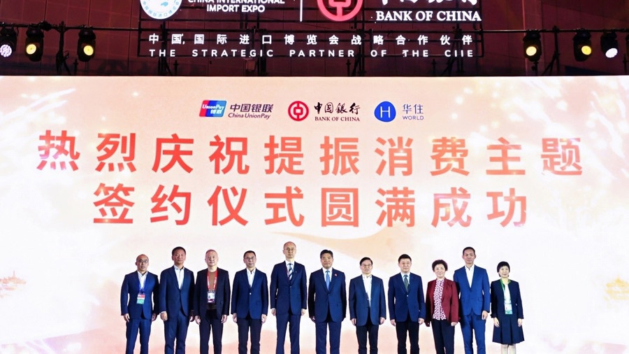 11月6日,在第八届中国国际进口博览会期间,中国银联联合中国银行在上海市国家会展中心成功举办"聚力进博新引擎 激活消费新纪元"业务合作发布会。