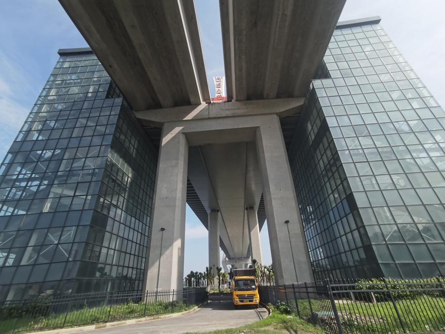 2020年通车的闵浦三桥有点特别:上下错层,上层桥面通行机动车,下层人非通道供行人和非机动车过江。但行人和非机动车出入空中通道,必须搭乘两头16部垂直电梯。