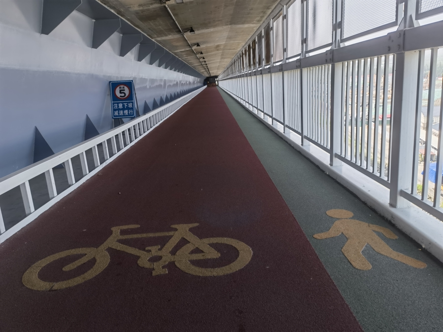 今年7月2日,新民晚报率先报道了这一“黄浦江大桥首创设计”5年后遇到的尴尬:早晚高峰时段,电梯口非机动车排队现象突出,越来越成为堵点;许多非机动车骑手为了“免排队”,甚至闯入上层机动车道(详见前文)。在媒体的关注下,而今这一情况将得到改观,以后市民驾驶非机动车,可以直接上坡驶入人非通道,更方便快捷地过江了!
