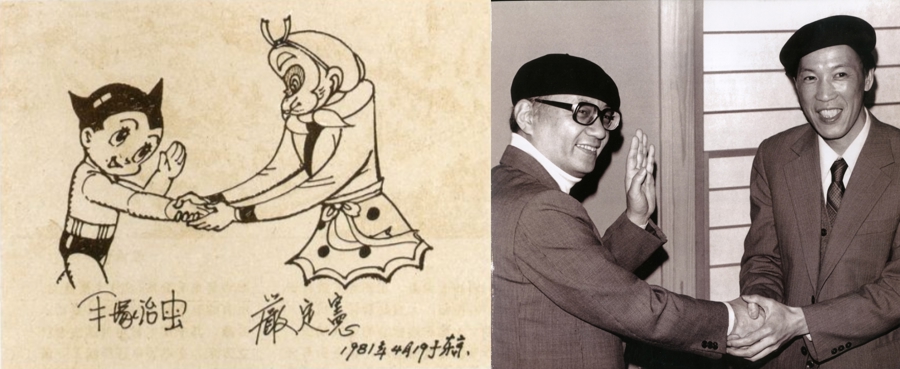 这场展览的背后,是两大经典IP超过40年的深厚渊源。上世纪80年代,深受中国动画艺术影响的日本动画大师手冢治虫多次访华,与中国动画界展开深入交流。在一次具有历史意义的会面中,著名美术电影导演、《大闹天宫》首席动画设计、上海美术电影制片厂前厂长严定宪受邀与手冢治虫共同创作了一幅孙悟空与阿童木的握手图,记录下两个经典形象首次“同框”的珍贵瞬间。多年后,手冢治虫更代表日本动画学会亲笔绘制了孙悟空拥抱阿童木的画作赠予上海美术电影制片厂,成为了这段跨越国界的动画情谊的见证。